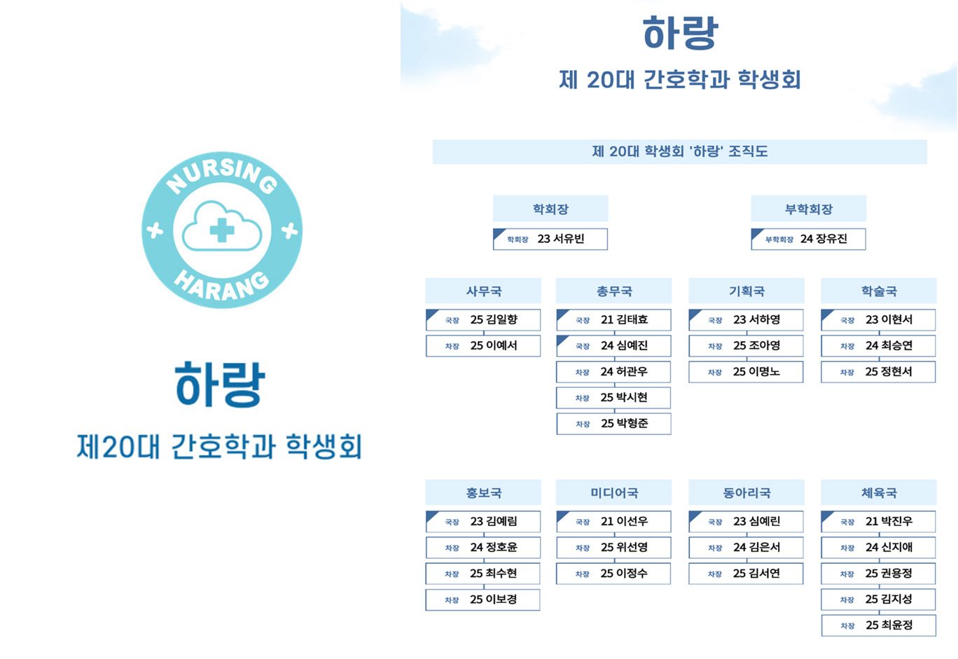 “하랑”은 “더불어 사는 세상에서 함께 높은 사람이 되라”는 의미로, 학생들과 함께 더 높이 올라가자는 목표를 가지고 활기찬 분위기를 조성하며 서로의 목소리를 모아 협력하여 소통하는 학생회를 만들어 가겠습니다!
